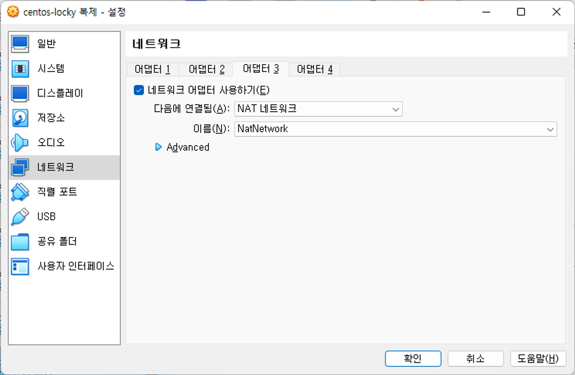 0. 가상머신의 스냅샷을 이용해서 복제한 후 인터페이스 하나 추가 (NatNetwork 어뎁터 선택)