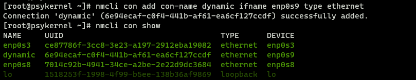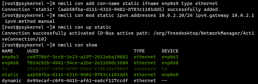 8. 새 머신에서 nmcli 명령어로 새로운 설정을 하나 더 추가합니다.
