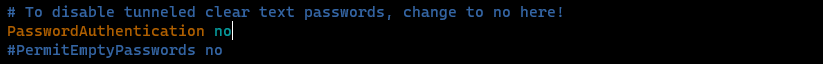 - 두번째로 위 값이 yes인 상태에서 PasswordAuthentication 을 no 로 바꾸고 각 사용자로 접속을 시도해보세요.