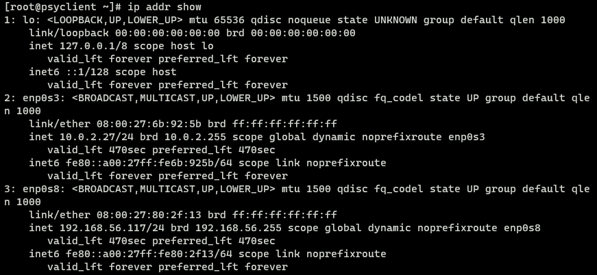 2. 각 가상머신의 IP주소와 호스트네임을 확인하세요.