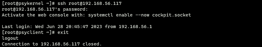 3. A 가상머신에서 B 가상머신의 IP 주소와 호스트네임을 이용해서 root 사용자로 접속을 시도해봅니다. -> 호스트네임으로는 접속안됨