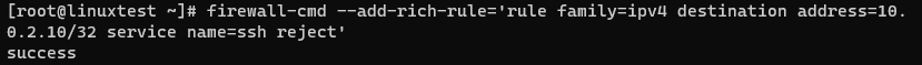 - 위 규칙들을 제거하고 destination address 를 10.0.2.10 이면서 ssh(22번)로 접속하려고 하면 reject 하도록 규칙을 추가하고 다시 접속해보세요.