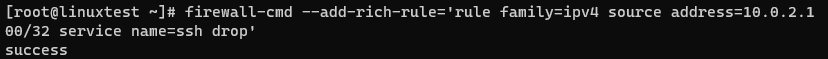 - source address 가 10.0.2.100 이면서 ssh(22번)로 접속하려고 하면 drop 하도록 규칙을 추가해보세요.