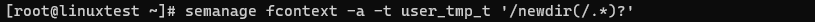 11. newdir 디렉토리에 기본값을 설정 → user_tmp_t
