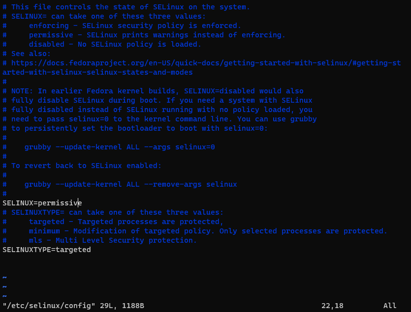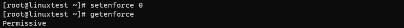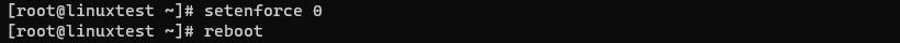 4. 설정파일의 내용을 Permissive 로 변경 후 재부팅 및 확인 (설정파일은 원상복구)