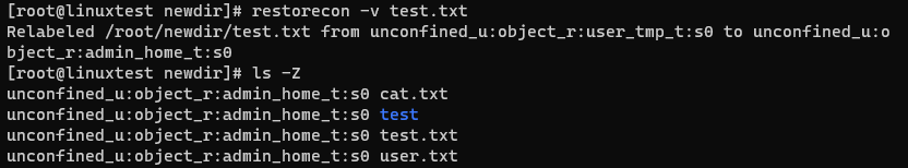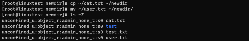 8. cp 명령어와 mv 명령어로 기존의 파일을 복사/이동 후 컨텍스트 확인