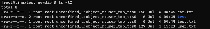 6. ls -Z 로 해당 디렉토리의 컨텍스트 확인
