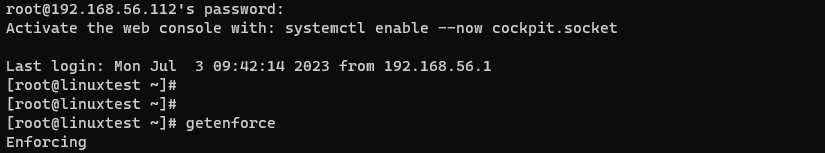 2. 현재 동작모드를 Permissive 변경 및 확인